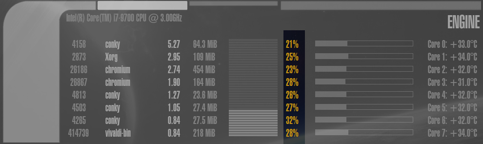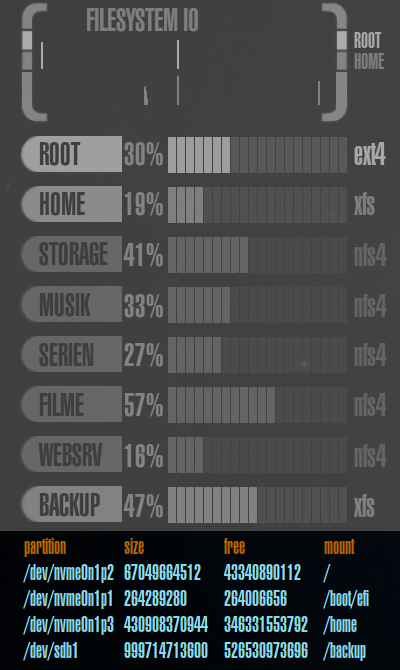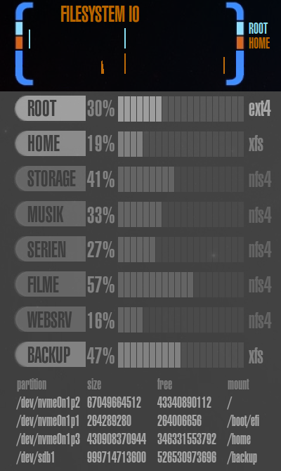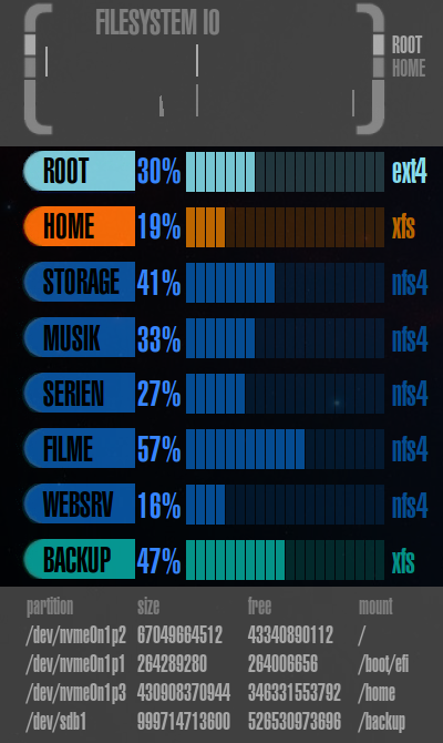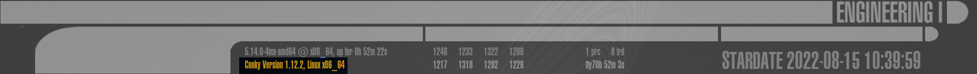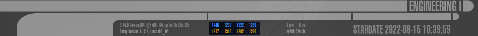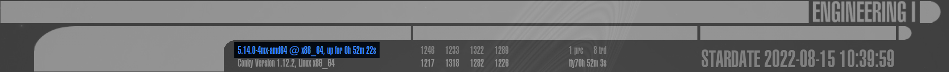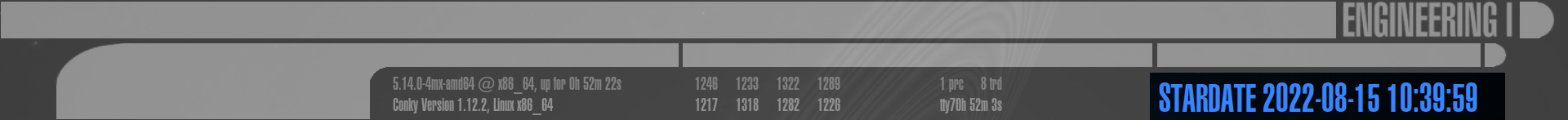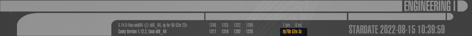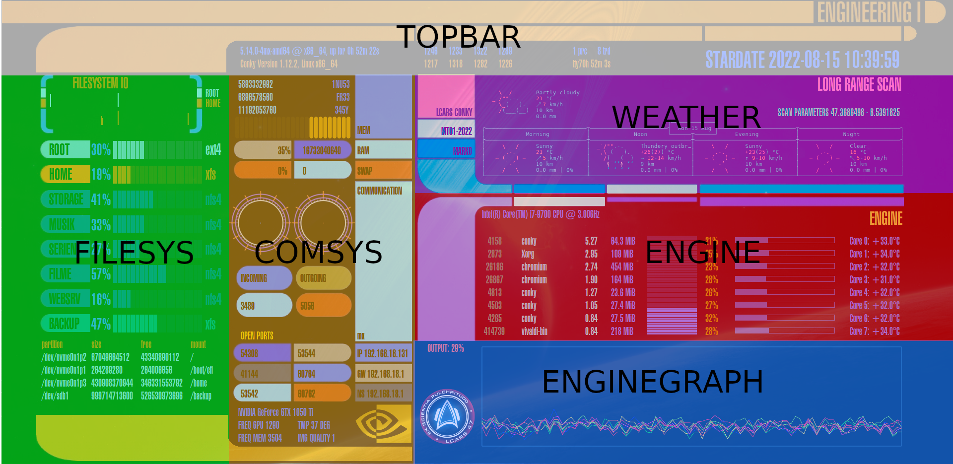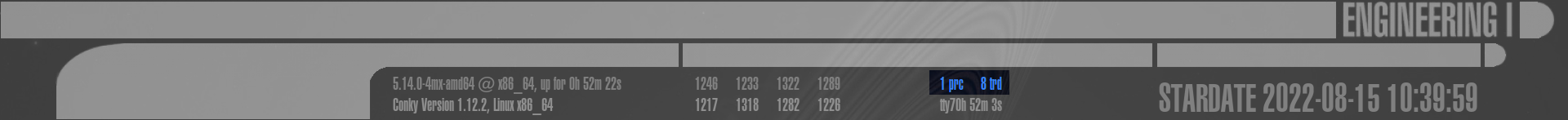 Dies ist der komplexeste Bereich des gesamten LCARS Conky, aufgeteilt in 9 weitere Sektionen: